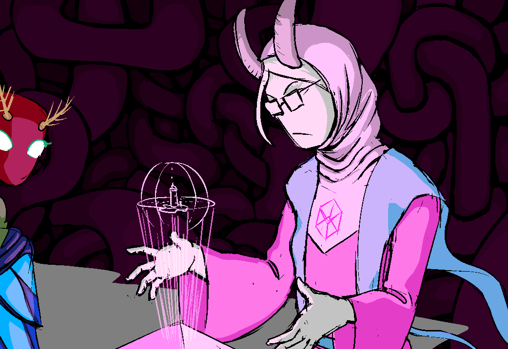 Now that you're in the center of Kaos, at the only known element of structure it seems to possess, you may be able to search more effectively than you could in the Medium. You refract a diagram that at this point looks like absolutely nothing, and Kuviu comes to watch.